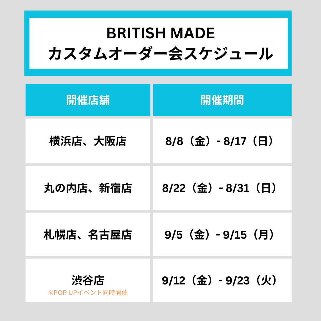 8/8 – 9/23 BRITISH MADE 7店舗でカスタムオーダー会を順次開催