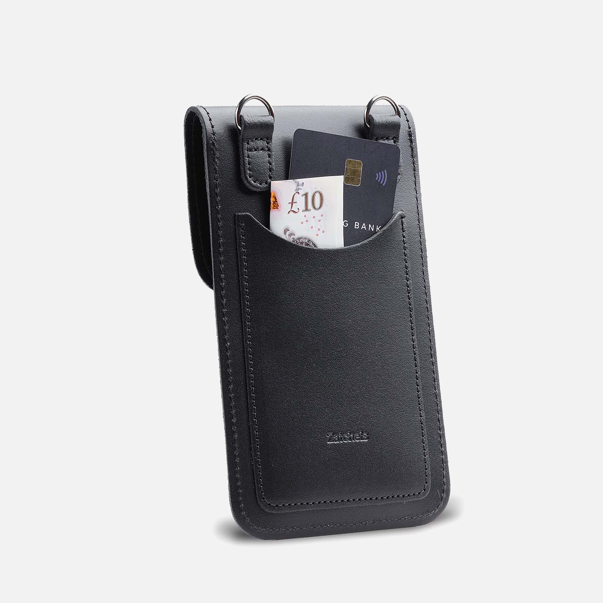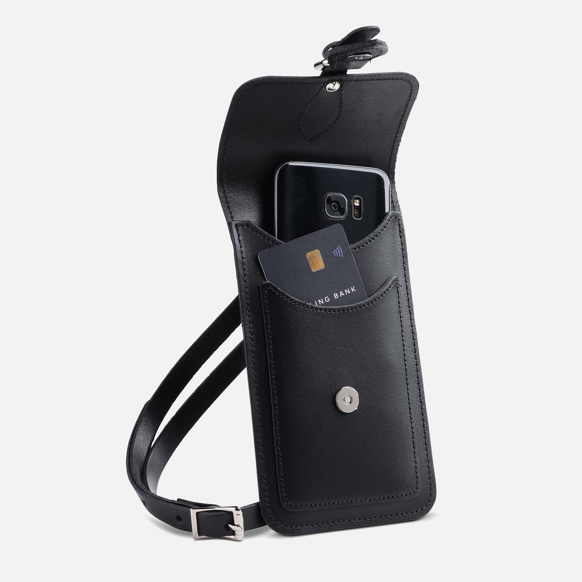 一般的な大きさのスマートフォンがすっぽり入ります。